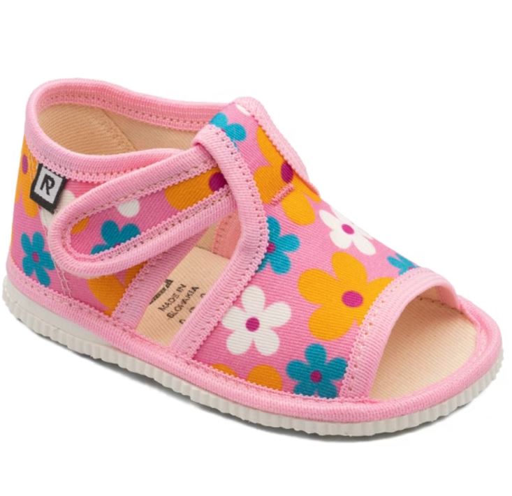 Papučky Rak sú z poctivej slovenskej dielne. Vyrábajú sa v rôznorodých farebných prevedeniach. Daný model je sandálkového strihu s otvorenou špicou so zapínaním na suchý zips, takže sa pekne prispôsobia členkom. Sedia na normálne široké aj širšie nôžky. Papučky sú ľahučké, stielka je v časti klenby vyplnená penovým materiálom, vďaka čomu je chodenie pohodlné.