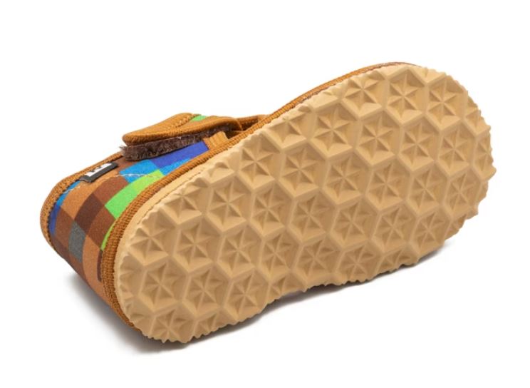 Papučky Rak sú z poctivej slovenskej dielne. Vyrábajú sa v rôznorodých farebných prevedeniach. Daný model je sandálkového strihu s otvorenou špicou so zapínaním na suchý zips, takže sa pekne prispôsobia členkom. Tvar špičky s dôrazom na typicky detský dominantný palček zabezpečuje dostatočný priestor pre prsty. Papučky sedia na širšie nôžky aj s mierne vyšším priehlavkom. Elastická stielka zvyšujúca komfort pri chôdzi je z kombinácie „pamäťovej“ peny a prírodnej podšívkovej ECO kože. Podrážka je pružná, ohybná, z materiálu na báze prírodného kaučuku s výrazným protišmykovým efektom aj na hladkých a lesklých povrchoch. Vďaka svojej pružnosti a tvaru, ich možno považovať za alternatívu barefootových papučiek.