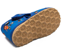Papučky Rak sú z poctivej slovenskej dielne. Vyrábajú sa v rôznorodých farebných prevedeniach. Daný model je sandálkového strihu so zatvorenou špicou so zapínaním na suchý zips, takže sa pekne prispôsobia členkom. Tvar špičky s dôrazom na typicky detský dominantný palček zabezpečuje dostatočný priestor pre prsty. Papučky sedia na širšie nôžky aj s vyšším priehlavkom. Elastická stielka zvyšujúca komfort pri chôdzi je z kombinácie „pamäťovej“ peny a prírodnej podšívkovej ECO kože. Podrážka je pružná, ohybná, z materiálu na báze prírodného kaučuku s výrazným protišmykovým efektom aj na hladkých a lesklých povrchoch. Vďaka svojej pružnosti ich možno považovať za alternatívu barefootových papučiek.