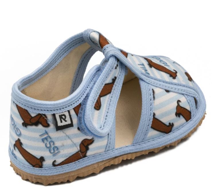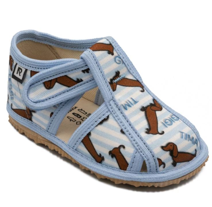 Papučky Rak sú z poctivej slovenskej dielne. Vyrábajú sa v rôznorodých farebných prevedeniach. Daný model je sandálkového strihu so zatvorenou špicou so zapínaním na suchý zips, takže sa pekne prispôsobia členkom. Tvar špičky s dôrazom na typicky detský dominantný palček zabezpečuje dostatočný priestor pre prsty. Papučky sedia na širšie nôžky aj s vyšším priehlavkom. Elastická stielka zvyšujúca komfort pri chôdzi je z kombinácie „pamäťovej“ peny a prírodnej podšívkovej ECO kože. Podrážka je pružná, ohybná, z materiálu na báze prírodného kaučuku s výrazným protišmykovým efektom aj na hladkých a lesklých povrchoch. Vďaka svojej pružnosti ich možno považovať za alternatívu barefootových papučiek.