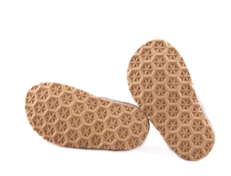 Papučky Rak sú z poctivej slovenskej dielne. Vyrábajú sa v rôznorodých farebných prevedeniach. Daný model je sandálkového strihu so zatvorenou špicou so zapínaním na suchý zips, takže sa pekne prispôsobia členkom. Tvar špičky s dôrazom na typicky detský dominantný palček zabezpečuje dostatočný priestor pre prsty. Papučky sedia na širšie nôžky aj s vyšším priehlavkom. Elastická stielka zvyšujúca komfort pri chôdzi je z kombinácie „pamäťovej“ peny a prírodnej podšívkovej ECO kože. Podrážka je pružná, ohybná, z materiálu na báze prírodného kaučuku s výrazným protišmykovým efektom aj na hladkých a lesklých povrchoch. Vďaka svojej pružnosti ich možno považovať za alternatívu barefootových papučiek.