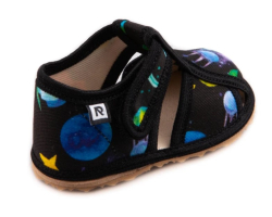 Papučky Rak sú z poctivej slovenskej dielne. Vyrábajú sa v rôznorodých farebných prevedeniach. Daný model je sandálkového strihu so zatvorenou špicou so zapínaním na suchý zips, takže sa pekne prispôsobia členkom. Tvar špičky s dôrazom na typicky detský dominantný palček zabezpečuje dostatočný priestor pre prsty. Papučky sedia na širšie nôžky aj s vyšším priehlavkom. Elastická stielka zvyšujúca komfort pri chôdzi je z kombinácie „pamäťovej“ peny a prírodnej podšívkovej ECO kože. Podrážka je pružná, ohybná, z materiálu na báze prírodného kaučuku s výrazným protišmykovým efektom aj na hladkých a lesklých povrchoch. Vďaka svojej pružnosti ich možno považovať za alternatívu barefootových papučiek.