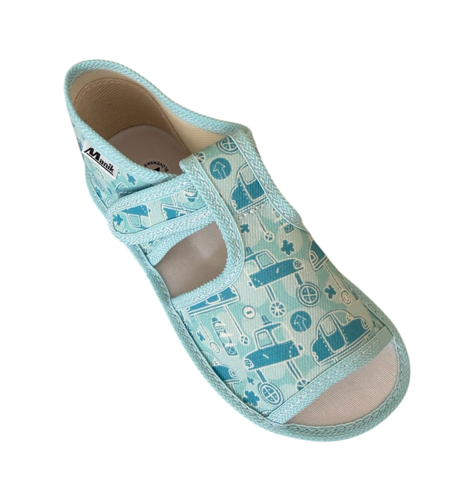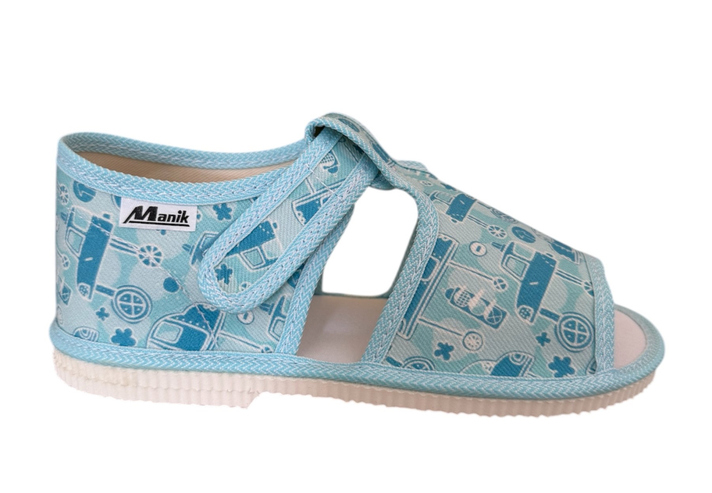 Papučky Manik sú z poctivej slovenskej dielne. Vyrábajú sa v rôznych farebných kombináciách a prevedeniach. Papučky sú sandálkového strihu s otvorenou špicou so zapínaním na suchý zips, takže sa pekne prispôsobia členkom. Sedia na normálne široké až užšie nôžky. Papučky sú ľahučké, majú výraznejšie tvarovanú klenbu a vďaka pevnejšej látke krásne detičkám sedia.