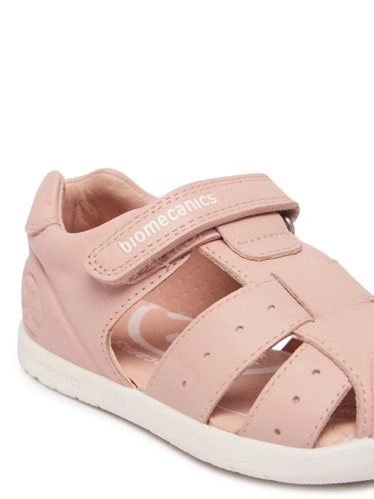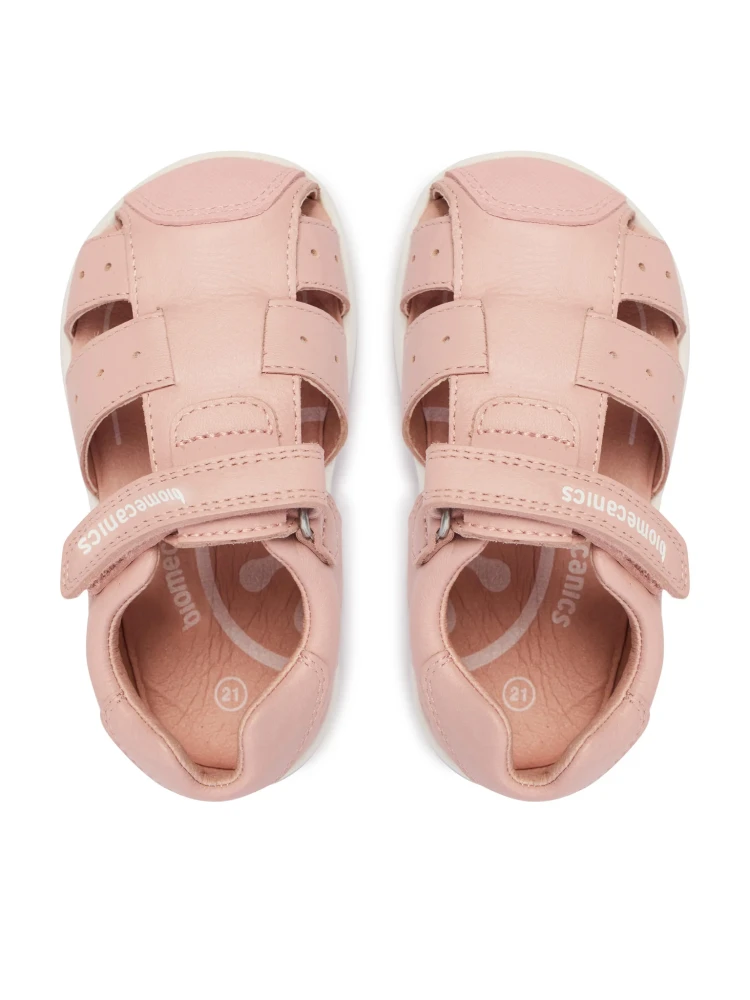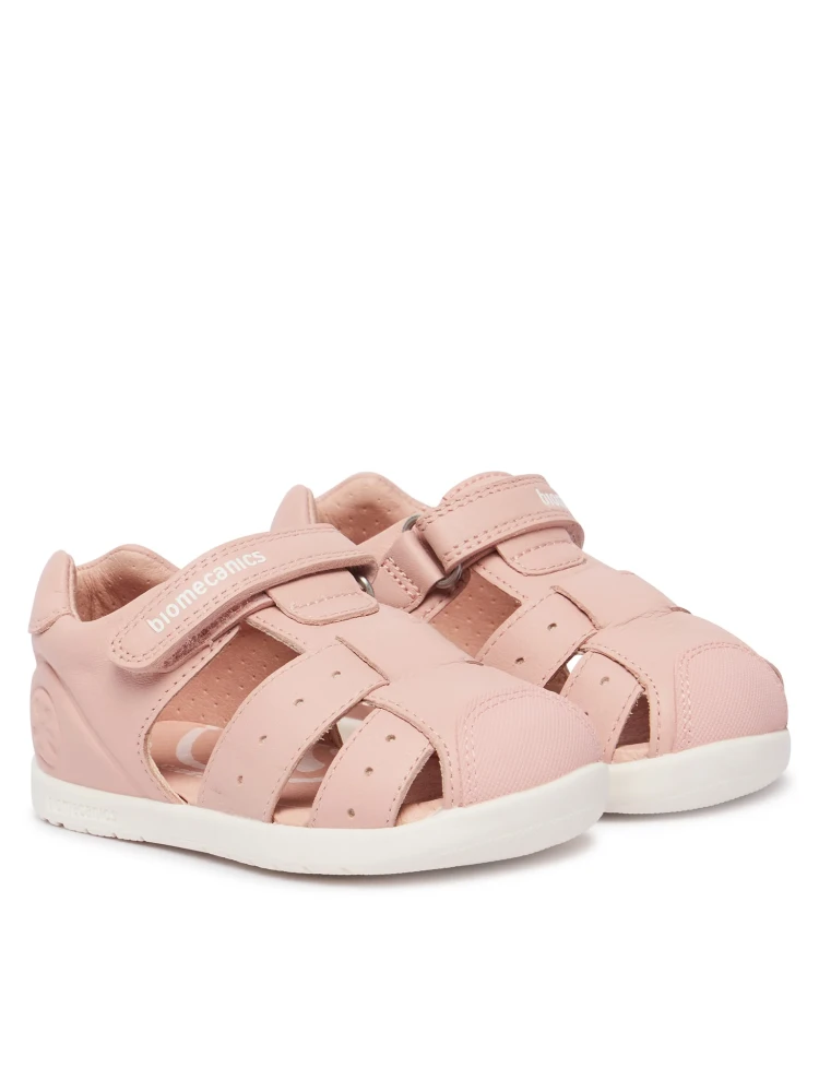 Barefootové sandálky od španielskej značky Biomecanics so zatvorenou pätou a špicou. Sú ľahučké, kvalitne prepracované a poskytujú dostatočný priestor pre prsty. Špica je pogumovaná, aby sa zabránilo okopaniu a predĺžila sa životnosť topánočiek. Sedia na normálne široké aj širšie nohy a normálne vysoký a vysoký priehlavok. Topánky majú tenkú a flexibilnú podrážku s nulovým dropom (medzi pätou a špičkou nie je výškovo žiaden rozdiel, podrážka je teda úplne plochá a chodidlo je rovnako vysoko od zeme v päte aj špičke). Sú netvarované, bez podpory klenby. Päta je spevnená. Zapínajú sa na suchý zips, ktorý dobre upevňuje členok. Sú ideálne na horúce letné dni a ich jemný dizajn zladíte ku každej príležitosti. Či už na prechádzku do mesta alebo na ihrisko.