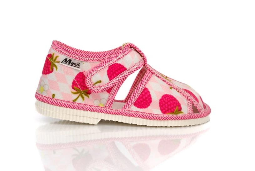 Papučky Manik sú z poctivej slovenskej dielne. Vyrábajú sa v rôznych farebných kombináciách a prevedeniach. Papučky sú sandálkového strihu so zatvorenou špicou so zapínaním na suchý zips, takže sa pekne prispôsobia členkom. Sedia na normálne široké až užšie nôžky. Papučky sú ľahučké a vďaka pevnejšej látke krásne detičkám sedia.