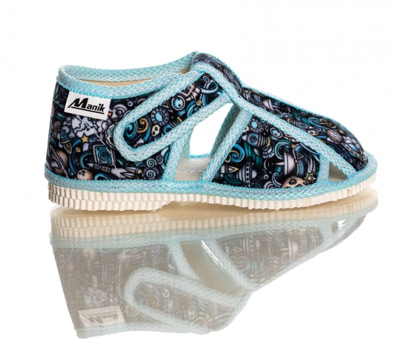Papučky Manik sú z poctivej slovenskej dielne. Vyrábajú sa v rôznych farebných kombináciách a prevedeniach. Papučky sú sandálkového strihu so zatvorenou špicou so zapínaním na suchý zips, takže sa pekne prispôsobia členkom. Sedia na normálne široké až užšie nôžky. Papučky sú ľahučké, majú výraznejšie tvarovanú klenbu a vďaka pevnejšej látke krásne detičkám sedia.