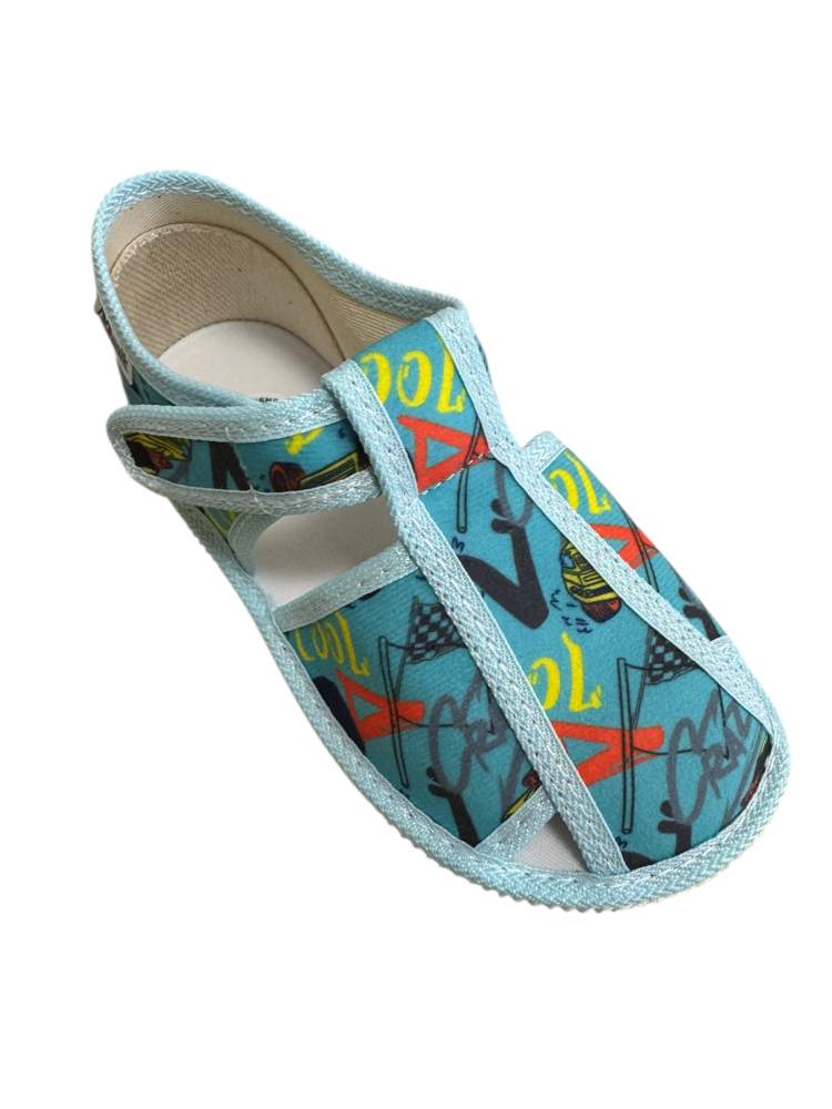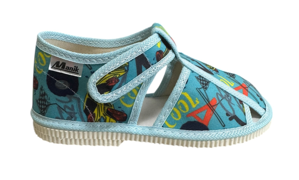 Papučky Manik sú z poctivej slovenskej dielne. Vyrábajú sa v rôznych farebných kombináciách a prevedeniach. Papučky sú sandálkového strihu so zatvorenou špicou so zapínaním na suchý zips, takže sa pekne prispôsobia členkom. Sedia na normálne široké až užšie nôžky. Papučky sú ľahučké a vďaka pevnejšej látke krásne detičkám sedia.