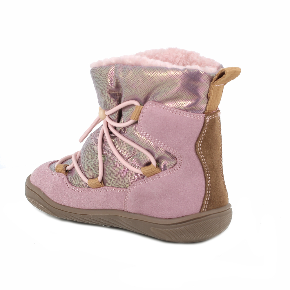 Štýlové barefoot zimné topánky talianskej značky Primigi sú veľmi ľahké a maximálne pohodlné. Gore-tex membrána chráni topánočky bez dodatočnej impregnácie pred dažďom, snehom a vlhkosťou. Vďaka zaoblenej špici poskytujú dostatočný priestor pre dominantný palec, ale i pre prsty celkovo. Sedia na normálne široké a širšie nôžky. Sadnú na normálne vysoký priehlavok. Topánočky sa uťahujú elastickou šnúrovačkou, ktorá sa prispôsobí každej nôžke. Vnútro topánok je zateplené hrejivou kožušinkou. Majú tenkú a flexibilnú podrážku. Podrážka je s nulovým dropom (medzi pätou a špičkou nie je výškovo žiaden rozdiel, podrážka je teda úplne plochá a chodidlo je rovnako vysoko od zeme v päte aj špičke). Päta je mierne spevnená. Topánočky majú zateplenú, vyberateľnú stielku bez podpory klenby. Stielka je zo spodnej strany potiahnutá hliníkovou fóliou, ktorá chráni nôžky pred chladom. Tento druh topánok je možné impregnovať sprejom na membrány pre lepšiu údržbu a jednoduché čistenie.