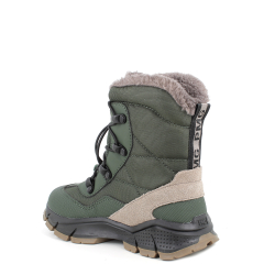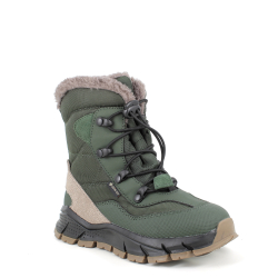 Vyššie, nepremokavé čižmy od talianskej značky Primigi v štýlovom chlapčenskom prevedení. Gore-tex membrána ochráni topánočky bez dodatočnej impregnácie pred dažďom, snehom a vlhkosťou. Sedia na normálne široké nôžky. Vnútro je potiahnuté príjemnou kožušinou. Vďaka Extra grip podrážke sú ideálne na klzký povrch. Podrážka pôsobí protišmykovo, no topánka je zároveň ľahká a na nôžke maximálne pohodlná. Veľmi praktická je i vyvýšená špička, ktorá chráni topánočky pred okopaním. Nohu v topánkach upevňuje elastická šnurovačka. Stielka je zateplená kožušinou a zo spodnej strany je potiahnutá hliníkovou fóliou, ktorá udržuje teplo v topánke a chráni tak nôžky pred chladom.