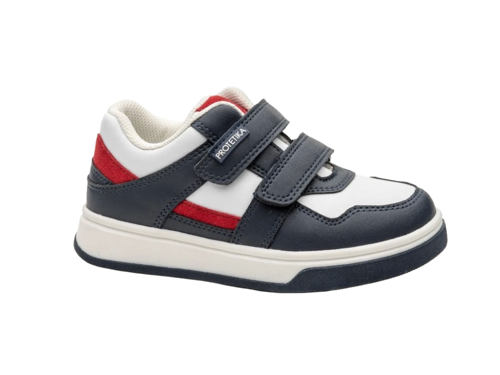 Celokožené tenisky od značky Protetika v štýlovom prevedení. Sedia na normálne široké nôžky a obujú ich aj deti s mierne vyšším priehlavkom. Topánočky sú pevné, fixujú členok a majú tiež spevnenú pätu. Nachádza sa v nich kožená, vyberateľná stielka, ktorá má ortopedicky tvarovanú klenbu. Dajú sa pekne utiahnuť dvoma suchými zipsami a prispôsobiť tak nôžkam. Vnútro topánok je vystlané mäkkou, priedušnou textíliou. Údržba a starostlivosť o topánky je jednoduchá, pri ušpinení stačí šetrne očistiť. Odporúčaná je aj pravidelná impregnácia, vďaka ktorej je obuv odolnejšia a zostáva chránená pred vonkajšími vplyvmi.