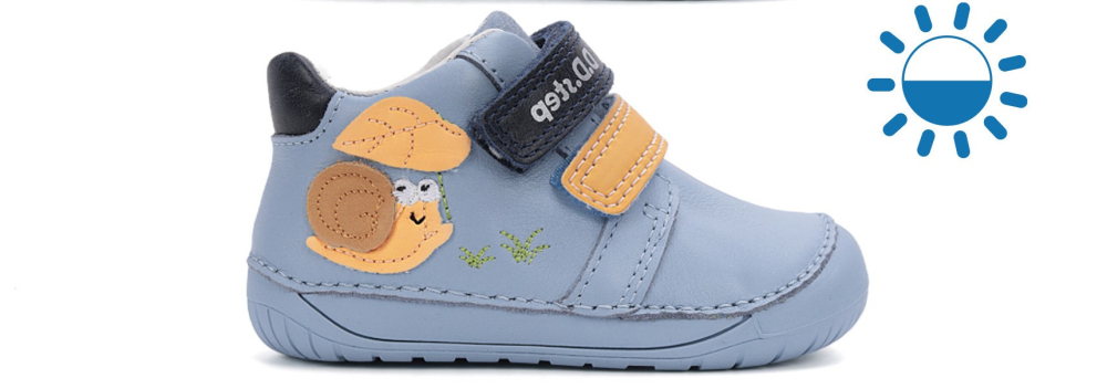 Celokožené barefoot topánky od značky D.D.Step s radou podrážky 070, ktorá je mäkká a flexibilná. Topánočky sú ohybné pozdĺžne aj priečne a špica poskytuje dostatok miesta pre prsty. Zapínajú sa na dva suché zipsy a majú nespevnenú pätovú oblasť. Sedia na normálne široké nôžky, znesú aj mierne vyšší priehlavok. V topánkach sa nachádza vyberateľná, netvarovaná stielka. Majú praktickú, vyvýšenú, pogumovanú špicu, ktorá chráni topánočky pred okopaním, čím sa predlžuje ich životnosť. Údržba a starostlivosť o topánky je jednoduchá, pri sychravom počasí ich stačí impregnovať a po ušpinení čistiť jemne vlhkou handričkou. Topánky majú fosforujúcu podrážku, ktorá v tme svieti (vid. na fotkách), čo možno považovať za reflexný prvok.