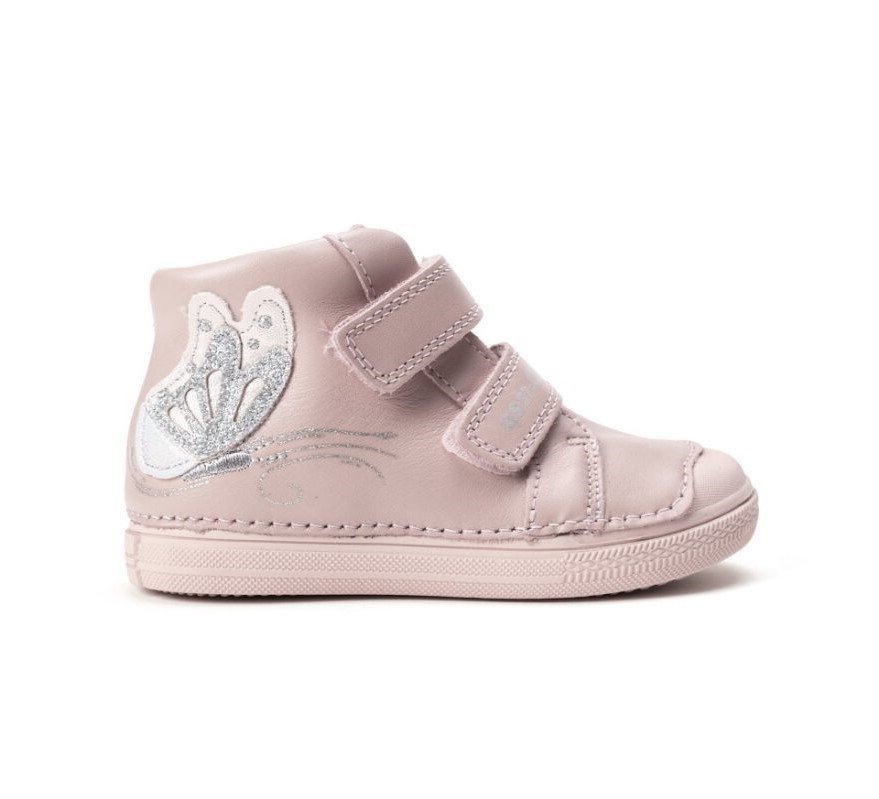 Vyššie celokožené tenisky od značky D.D.Step v štýlovom dievčenskom prevedení. Sedia na normálne široké aj širšie nôžky. Majú kožou potiahnutú, vyberateľnú stielku, ktorá je ortopedicky tvarovaná. Topánočky sa dajú pekne utiahnuť a prispôsobiť tak nôžkam, vďaka dvom suchým zipsom, čo je výhodou aj pre detičky s užšími členkami. Päta je spevnená, chráni nôžku pred nárazmi a poskytuje oporu. Topánočky majú veľmi praktickú pogumovanú špicu, ktorá slúži ako ochrana pred okopaním, vďaka čomu sa maximalizuje ich životnosť.Topánočky sú členkové, ideálne aj na sychravé jarné či jesenné počasie. Údržba a starostlivosť o topánočky je jednoduchá, stačí ich impregnovať a pri ušpinení šetrne čistiť.