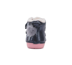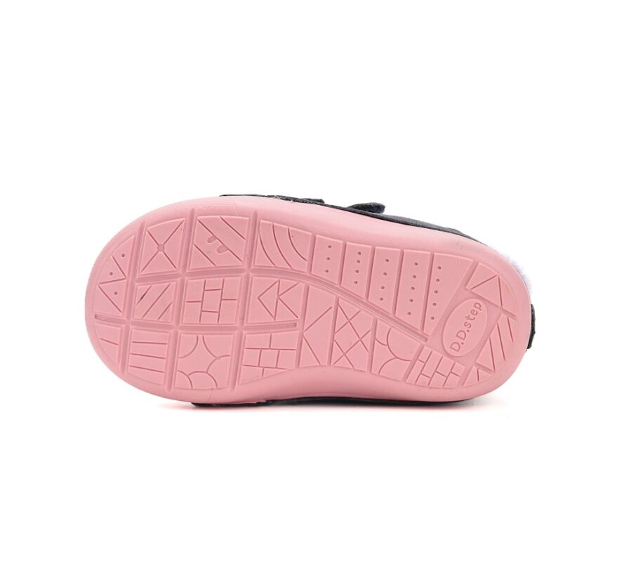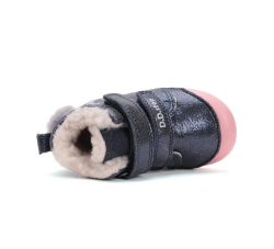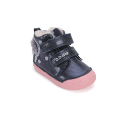 Vyššie, kožené topánočky od značky D.D.Step s radou podrážky 066, ktorá je považovaná za barefoot, teda Barefeet by D.D.Step. Majú mierne spevnenú pätu a podrážka je ohybná v oboch smeroch, pozdĺžne aj priečne. Sedia na normálne až širšie nôžky. Sú zateplené príjemnou, hrejivou kožušinou a dajú sa pekne pritiahnuť dvoma suchými zipsami, čo je výhodou aj pre detičky s užšími členkami. Vo vnútri sa nachádza vyberateľná, zateplená stielka, ktorá nie je tvarovaná. Výhodou je najmä praktická pogumovaná špica, ktorá zabráni okopaniu. Údržba a starostlivosť o topánočky je jednoduchá, stačí ich impregnovať.