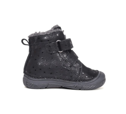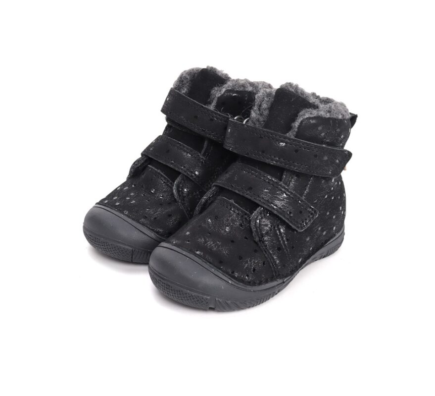 Celokožené topánky od značky D.D.Step s radou podrážky 082, ktorá je mäkká a flexibilná. Topánočky sú ohybné pozdĺžne aj priečne a zaguľatená špica poskytuje dostatok miesta pre prsty. Dajú sa pekne utiahnuť vďaka dvom suchým zipsom. Majú spevnenú pätovú oblasť. Sedia na normálne široké aj širšie nôžky. Topánky sú potiahnuté príjemnou, hrejivou kožušinkou. V topánkach sa nachádza vyberateľná, jemne tvarovaná stielka, ktorá je taktiež zateplená kožušinkou. Výhodou je najmä praktická pogumovaná špica, ktorá zabráni okopaniu. Údržba a starostlivosť o topánočky je jednoduchá, stačí ich impregnovať a pri ušpinení očistiť jemnou kefkou či vlhkou handričkou. Topánočky sú členkové, ideálne aj na sychravé jarné či jesenné počasie.