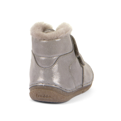 Barefootové celokožené topánky zateplené jahňacou vlnou od chorvátskej značky FRODDO. Sú ľahké, kvalitne prepracované a poskytujú dostatočný priestor pre prsty. Sedia na normálne široké nohy a normálne vysoký priehlavok. Topánky majú tenkú a flexibilnú podrážku, ohybnú pozdĺžne aj priečne. Majú vyvýšenú pogumovanú špicu a pätu, ktorá ich chráni pred okopaním, čím sa predlžuje ich životnosť a odolnosť. Päta je mierne spevnená, pekne drží tvar. Podrážka nosením jemne zmäkne, vďaka čomu budú topánky ešte pohodlnejšie, s podošvou vyrobenou z termo gumy a s nulovým dropom (medzi pätou a špičkou nie je výškovo žiaden rozdiel, podrážka je teda úplne plochá a chodidlo je rovnako vysoko od zeme v päte aj špičke). Nohy v topánkach upevňujú dva suché zipsy, ktoré sa dajú pekne pritiahnuť aj k užším členkom. Ich vnútorné zateplenie z jahňacej vlny ich činí hrejivými a sú tak ideálne na studené zimné obdobie. Vo vnútri sa nachádza zateplená, netvarovaná stielka. Údržba a starostlivosť o topánočky je jednoduchá, pri ušpinení stačí šetrne očistiť a pravidelne impregnovať.