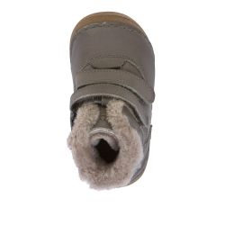 Barefootové celokožené topánky zateplené jahňacou vlnou od chorvátskej značky FRODDO. Sú ľahké, kvalitne prepracované a poskytujú dostatočný priestor pre prsty. Sedia na normálne široké nohy a normálne vysoký priehlavok. Topánky majú tenkú a flexibilnú podrážku, ohybnú pozdĺžne aj priečne. Majú vyvýšenú pogumovanú špicu a pätu, ktorá ich chráni pred okopaním, čím sa predlžuje ich životnosť a odolnosť. Päta je mierne spevnená, pekne drží tvar. Podrážka nosením jemne zmäkne, vďaka čomu budú topánky ešte pohodlnejšie, s podošvou vyrobenou z termo gumy a s nulovým dropom (medzi pätou a špičkou nie je výškovo žiaden rozdiel, podrážka je teda úplne plochá a chodidlo je rovnako vysoko od zeme v päte aj špičke). Nohy v topánkach upevňujú dva suché zipsy, ktoré sa dajú pekne pritiahnuť aj k užším členkom. Ich vnútorné zateplenie z jahňacej vlny ich činí hrejivými a sú tak ideálne na studené zimné obdobie. Vo vnútri sa nachádza zateplená, netvarovaná stielka. Údržba a starostlivosť o topánočky je jednoduchá, pri ušpinení stačí šetrne očistiť a pravidelne impregnovať.