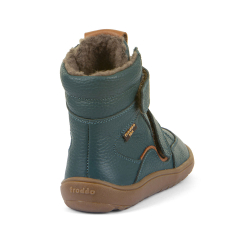 Barefootové celokožené topánky zateplené ovčou vlnou od chorvátskej značky FRODDO s nepremokavou Froddo-tex membránou, ktorá ochráni topánočky bez dodatočnej impregnácie pred dažďom, snehom a vlhkosťou. Sú ľahké, kvalitne prepracované a poskytujú dostatočný priestor pre prsty. Špica je anatomicky tvarovaná, vhodná pre dominantný palček aj nôžky typu plutvička. Sedia na normálne široké nohy a normálne vysoký priehlavok. Topánky majú tenkú a flexibilnú podrážku, ohybnú pozdĺžne aj priečne. Majú vyvýšenú pogumovanú špicu a pätu, ktorá ich chráni pred okopaním, čím sa predlžuje ich životnosť a odolnosť. Päta je mierne spevnená, pekne drží tvar. Podrážka nosením jemne zmäkne, vďaka čomu budú topánky ešte pohodlnejšie, je tiež protišmyková (extra grip). Nohy v topánkach upevňujú dva suché zipsy, ktoré sa dajú pekne pritiahnuť aj k užším členkom. Ich vnútorné zateplenie z ovčej vlny ich činí hrejivými a sú tak ideálne na studené zimné obdobie. Vo vnútri sa nachádza hrejivá, netvarovaná stielka. Údržba a starostlivosť o topánočky je jednoduchá, pri ušpinení stačí šetrne očistiť a v prípade používania impregnačných prostriedkov určených pre ochranu pred zašpinením, treba použiť impregnačný prostriedok výhradne určený na topánky s membránami.