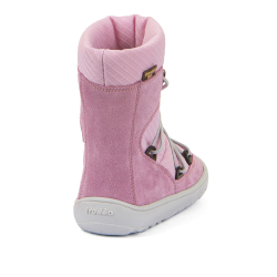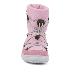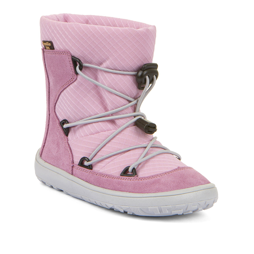 Barefootové topánky zateplené ovčou vlnou od chorvátskej značky FRODDO s nepremokavou Froddo-tex membránou, ktorá ochráni topánočky bez dodatočnej impregnácie pred dažďom, snehom a vlhkosťou. Sú ľahké, kvalitne prepracované a poskytujú dostatočný priestor pre prsty. Špica je anatomicky tvarovaná, vhodná pre dominantný palček aj nôžky typu plutvička. Sedia na normálne široké nohy a normálne vysoký priehlavok. Topánky majú tenkú a flexibilnú podrážku, ohybnú pozdĺžne aj priečne. Majú vyvýšenú pogumovanú špicu a pätu, ktorá ich chráni pred okopaním, čím sa predlžuje ich životnosť a odolnosť. Päta je mierne spevnená, pekne drží tvar. Podrážka nosením jemne zmäkne, vďaka čomu budú topánky ešte pohodlnejšie, je tiež protišmyková (extra grip), s podošvou s nulovým dropom (medzi pätou a špičkou nie je výškovo žiaden rozdiel, podrážka je teda úplne plochá a chodidlo je rovnako vysoko od zeme v päte aj špičke). Nohy v topánkach upevňuje elastická šnurovačka s brzdičkou, ktorá sa dá pekne pritiahnuť. Ich vnútorné zateplenie z ovčej vlny ich činí hrejivými a sú tak ideálne na studené zimné obdobie. Vo vnútri sa nachádza zateplená, netvarovaná stielka. Údržba a starostlivosť o topánočky je jednoduchá, pri ušpinení stačí šetrne očistiť a v prípade používania impregnačných prostriedkov určených pre ochranu pred zašpinením, treba použiť impregnačný prostriedok výhradne určený na topánky s membránami.