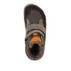 Barefootové topánky zateplené ovčou vlnou od chorvátskej značky FRODDO s nepremokavou Froddo-tex membránou, ktorá ochráni topánočky bez dodatočnej impregnácie pred dažďom, snehom a vlhkosťou. Sú ľahké, kvalitne prepracované a poskytujú dostatočný priestor pre prsty. Špica je anatomicky tvarovaná, vhodná pre dominantný palček aj nôžky typu plutvička. Sedia na normálne široké aj širšie nohy a vysoký priehlavok. Topánky majú tenkú a flexibilnú podrážku, ohybnú pozdĺžne aj priečne. Majú vyvýšenú pogumovanú špicu a pätu, ktorá ich chráni pred okopaním, čím sa predlžuje ich životnosť a odolnosť. Päta je mierne spevnená, pekne drží tvar. Podrážka nosením jemne zmäkne, vďaka čomu budú topánky ešte pohodlnejšie, je tiež protišmyková (extra grip), s podošvou s nulovým dropom (medzi pätou a špičkou nie je výškovo žiaden rozdiel, podrážka je teda úplne plochá a chodidlo je rovnako vysoko od zeme v päte aj špičke). Nohy v topánkach upevňujú dva suché zipsy, ktoré sa dajú pekne pritiahnuť aj k užším členkom. Ich vnútorné zateplenie z ovčej vlny ich činí hrejivými a sú tak ideálne na studené zimné obdobie. Vo vnútri sa nachádza zateplená, vyberateľná stielka. Údržba a starostlivosť o topánočky je jednoduchá, pri ušpinení stačí šetrne očistiť a v prípade používania impregnačných prostriedkov určených pre ochranu pred zašpinením, treba použiť impregnačný prostriedok výhradne určený na topánky s membránami.