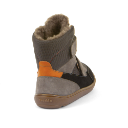 Barefootové topánky zateplené ovčou vlnou od chorvátskej značky FRODDO s nepremokavou Froddo-tex membránou, ktorá ochráni topánočky bez dodatočnej impregnácie pred dažďom, snehom a vlhkosťou. Sú ľahké, kvalitne prepracované a poskytujú dostatočný priestor pre prsty. Špica je anatomicky tvarovaná, vhodná pre dominantný palček aj nôžky typu plutvička. Sedia na normálne široké aj širšie nohy a vysoký priehlavok. Topánky majú tenkú a flexibilnú podrážku, ohybnú pozdĺžne aj priečne. Majú vyvýšenú pogumovanú špicu a pätu, ktorá ich chráni pred okopaním, čím sa predlžuje ich životnosť a odolnosť. Päta je mierne spevnená, pekne drží tvar. Podrážka nosením jemne zmäkne, vďaka čomu budú topánky ešte pohodlnejšie, je tiež protišmyková (extra grip), s podošvou s nulovým dropom (medzi pätou a špičkou nie je výškovo žiaden rozdiel, podrážka je teda úplne plochá a chodidlo je rovnako vysoko od zeme v päte aj špičke). Nohy v topánkach upevňujú dva suché zipsy, ktoré sa dajú pekne pritiahnuť aj k užším členkom. Ich vnútorné zateplenie z ovčej vlny ich činí hrejivými a sú tak ideálne na studené zimné obdobie. Vo vnútri sa nachádza zateplená, vyberateľná stielka. Údržba a starostlivosť o topánočky je jednoduchá, pri ušpinení stačí šetrne očistiť a v prípade používania impregnačných prostriedkov určených pre ochranu pred zašpinením, treba použiť impregnačný prostriedok výhradne určený na topánky s membránami.