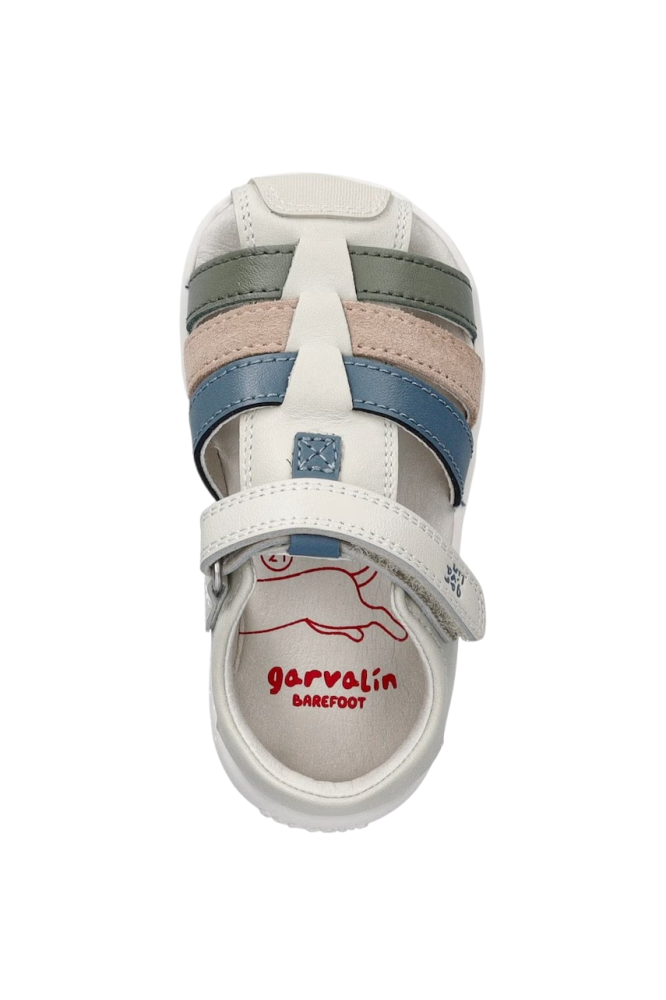 Barefootové sandálky od španielskej značky Garvalín so zatvorenou pätou a špicou. Sú ľahučké, kvalitne prepracované a poskytujú dostatočný priestor pre prsty. Špica je pogumovaná, aby sa zabránilo okopaniu a predĺžila sa životnosť topánočiek. Sedia na normálne široké nohy a normálne vysoký priehlavok. Topánky majú tenkú a flexibilnú podrážku s nulovým dropom (medzi pätou a špičkou nie je výškovo žiaden rozdiel, podrážka je teda úplne plochá a chodidlo je rovnako vysoko od zeme v päte aj špičke). Sú netvarované, bez podpory klenby. Päta je mierne spevnená. Zapínajú sa na suchý zips, ktorý dobre upevňuje členok. Sú ideálne na horúce letné dni a ich jemný dizajn zladíte ku každej príležitosti. Či už na prechádzku do mesta alebo na ihrisko.