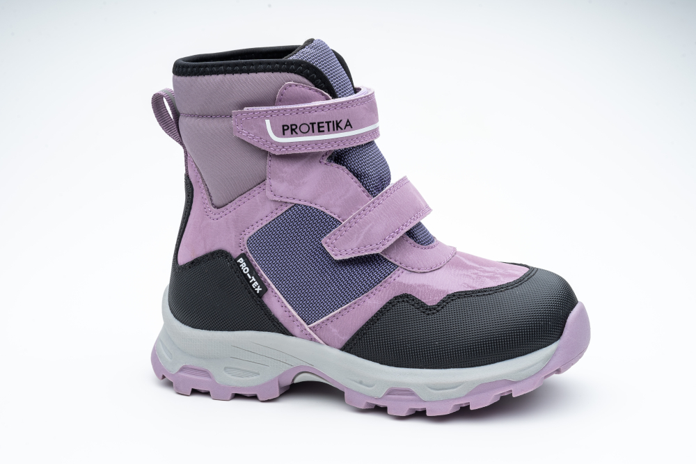 Vyššie čižmičky od značky Protetika s nepremokavou Pro-tex membránou. Pro-tex membrána chráni nôžky v topánkach pred dažďom, snehom a vlhkosťou, bez nutnosti impregnácie. Sedia na normálne široké nôžky. Vo vnútri majú vyberateľnú, zateplenú stielku, ktorá je ortopedicky tvarovaná. Topánky majú pevnú pätu a ich detaiyl slúžia ako reflexný prvok. Dajú sa pekne utiahnuť dvoma suchými zipsami a prispôsobiť tak nôžkam, čo je výhodou aj pre detičky s užšími členkami. Sú zateplené veľmi príjemnou, hrejivou kožušinkou, ktorá udrží nôžky v teple a pohodlí. Údržba a starostlivosť je jednoduchá, pri ušpinení stačí očistiť jemnou kefkou alebo vlhkou handričkou. Ak by ste sa predsa len rozhodli ich naimpregnovať, pre jednoduchšiu údržbu a ochranu pred zašpinením, tak použite impregnačný prostriedok určený na membrány.