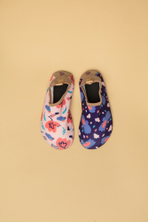 Topánočky by sa nemali kupovať s veľkým nadmerkom nakoľko ide o ponožkový tvar. Mali by sedieť presne aby sa detičkám nevyzúvali alebo aby ich nestratili vo vode.