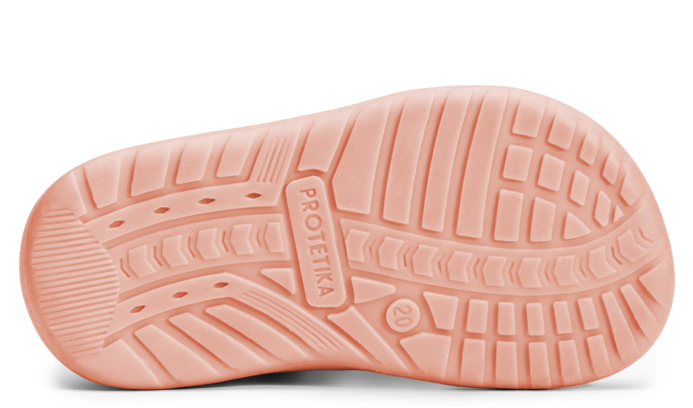 Obľúbené, barefootové sandálky od značky Protetika s novou vylepšenou podrážkou. Vďaka nej sú topánočky mäkšie, flexibilné, ohybné v oboch smeroch, pozdĺžne aj priečne. Sú ľahké a poskytujú dostatočný priestor pre prsty. Špica je anatomicky tvarovaná, vhodná aj pre dominantný palček. Sedia na normálne široké nôžky a normálne vsoký priehlavok. Nohu v topánkach upevňuje dva suchý zips, ktorý sa dá dobre prispôsobiť nôžke a krásne obopnú aj užší členok. Kožená stielka je vyberateľná a netvarovaná. Topánky majú vyvýšenú pogumovanú špicu a pätu, ktorá ich chráni pred okopaním, čím sa predlžuje ich životnosť.