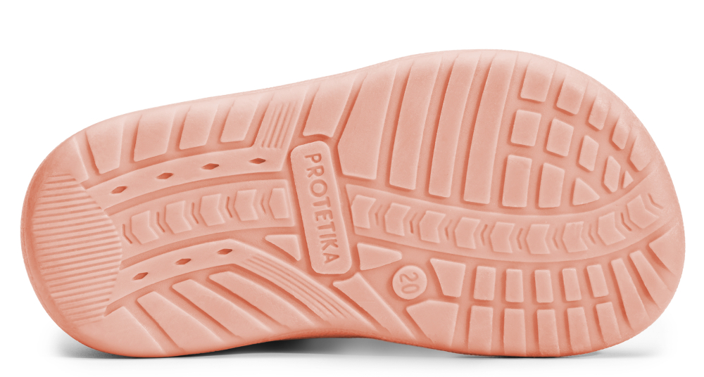 Obľúbené, barefootové sandálky od značky Protetika s novou vylepšenou podrážkou. Vďaka nej sú topánočky mäkšie, flexibilné, ohybné v oboch smeroch, pozdĺžne aj priečne. Sú ľahké a poskytujú dostatočný priestor pre prsty. Špica je anatomicky tvarovaná, vhodná aj pre dominantný palček. Sedia na normálne široké nôžky a znesú aj vyšší priehlavok. Nohy v topánkach upevňujú dva suché zipsy, ktoré sa dajú dobre prispôsobiť nôžke a krásne obopnú aj užší členok. Kožená stielka je vyberateľná a netvarovaná. Topánky majú vyvýšenú pogumovanú špicu a pätu, ktorá ich chráni pred okopaním, čím sa predlžuje ich životnosť.