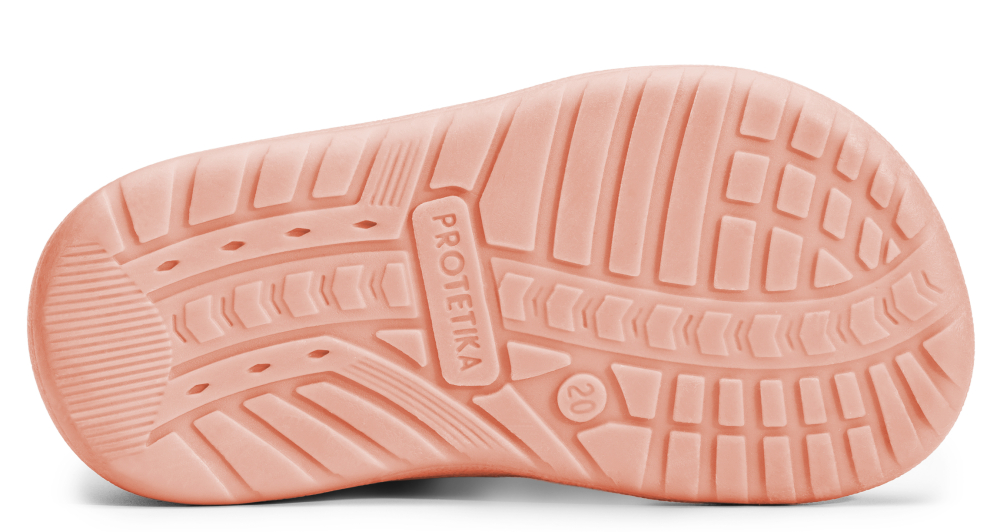 Obľúbené, barefootové sandálky od značky Protetika s novou vylepšenou podrážkou. Vďaka nej sú topánočky mäkšie, flexibilné, ohybné v oboch smeroch, pozdĺžne aj priečne. Sú ľahké a poskytujú dostatočný priestor pre prsty. Špica je anatomicky tvarovaná, vhodná aj pre dominantný palček. Sedia na normálne široké nôžky a znesú aj vyšší priehlavok. Nohy v topánkach upevňujú dva suché zipsy, ktoré sa dajú dobre prispôsobiť nôžke a krásne obopnú aj užší členok. Kožená stielka je vyberateľná a netvarovaná. Topánky majú vyvýšenú pogumovanú špicu a pätu, ktorá ich chráni pred okopaním, čím sa predlžuje ich životnosť.